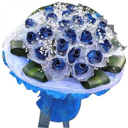 [材 料]:24枝蓝色妖姬(蓝玫瑰属非天然花材,需提前预定