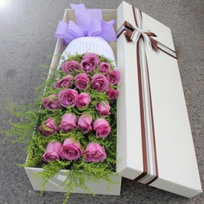 19只紫色精品昆明玫瑰,乳白色礼盒
