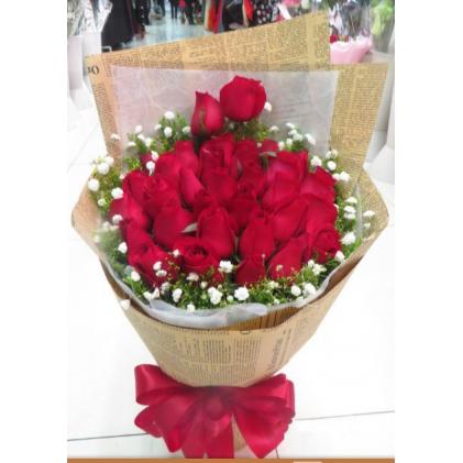 33只红色精品玫瑰 扇面包装