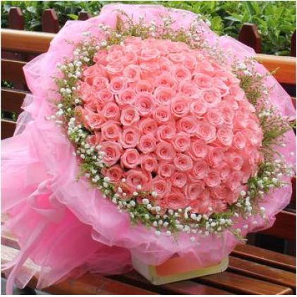 [材 料]:99枝粉玫瑰,满天星围绕玫瑰 [包 装]: 精致纱网圆形包装,粉色蝴蝶结 [花 语]: 每一朵都在细诉无尽的爱,每一朵都是我在对你说:“嫁给我吧!”