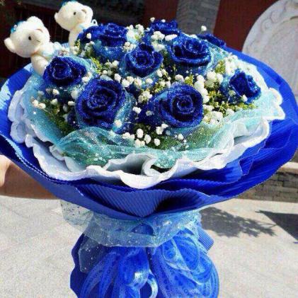 11只蓝色妖姬+2熊,蓝色包装
