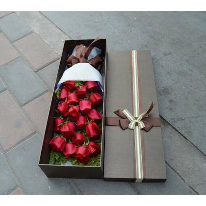 19只红色玫瑰,卡其色长形礼盒