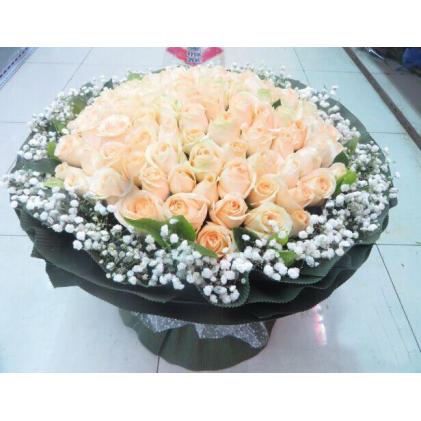 99只香槟玫瑰 满天星 绿叶外围