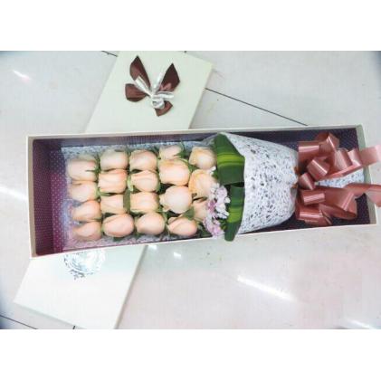 19只香槟玫瑰 白色礼盒