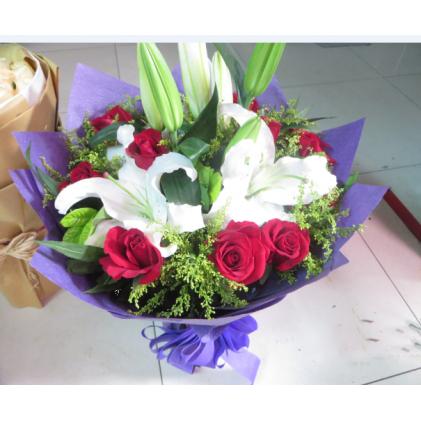 11只精品红玫瑰+2只白色多头香水百合 紫色包装