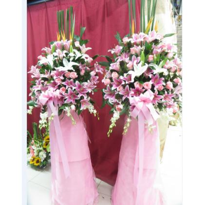 花材:戴安娜玫瑰 白百合 粉百合 洋兰 小鸟