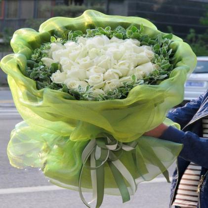 33只精品白玫瑰 绿叶丰满