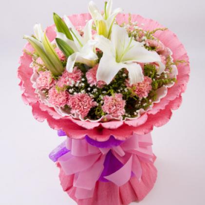19只粉色康乃馨+2只多头香水百合