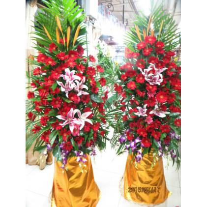 花篮1.8米 花材:小鸟 红色弗朗 粉色百合 洋兰 散尾